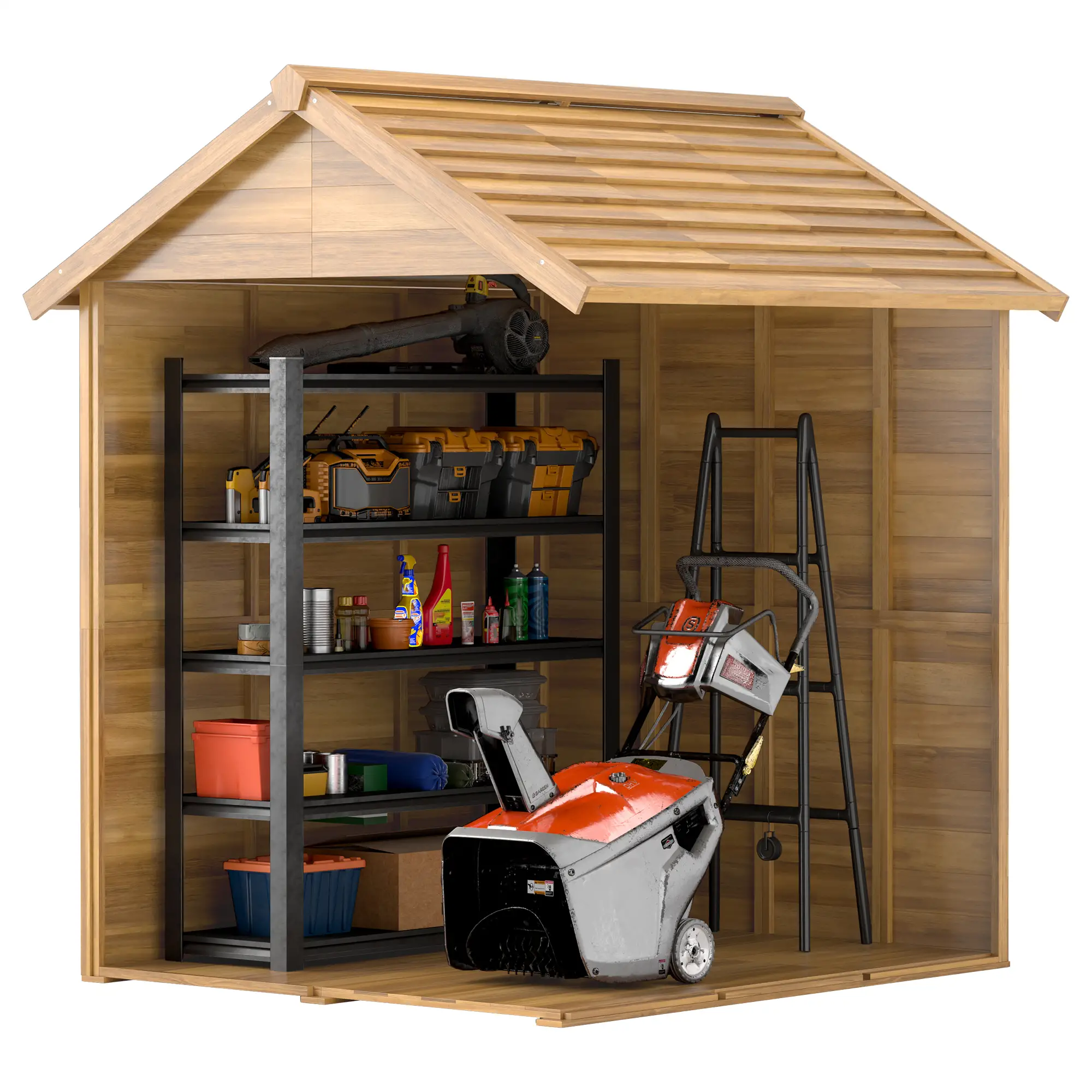 - – Le toit en forme d’apex assure un écoulement efficace de l’eau de pluie pour un stockage au sec
