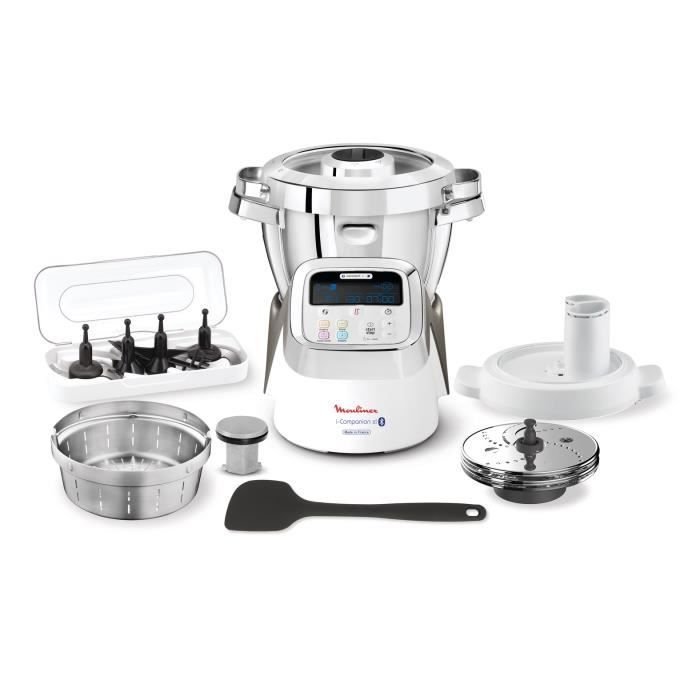 Robot cuiseur connecté I-Companion XL – Puissance : 1550 W – Coloris : gris – Application gratuite compatible IOS et Android – 10 programmes et sous-programmes automatiques – 13 vitesses + Pulse – Accessoires : panier vapeur, batteur, mélangeur, couteau hachoir, couteau pétrir/concasser, accessoire fond plat + découpe-légumes